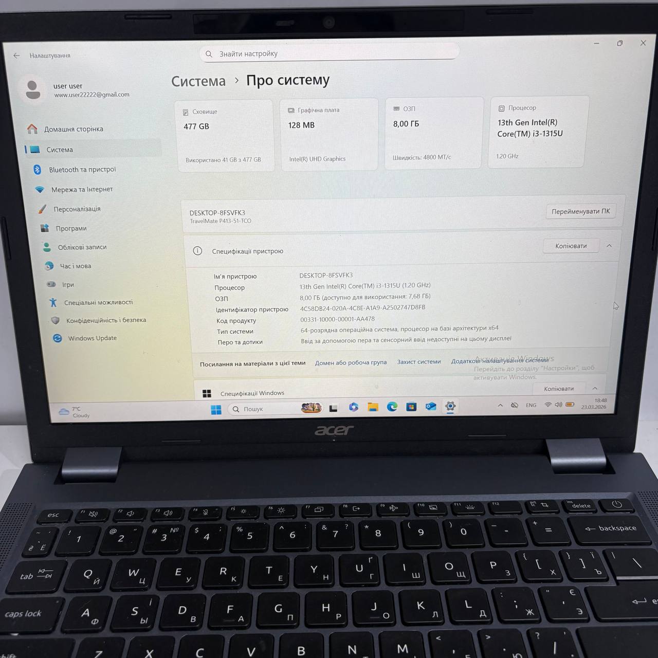 ACER TravelMade P4 13 N23C4/Core I3-1315U/8GB/UHDGraphics/SSD512GB