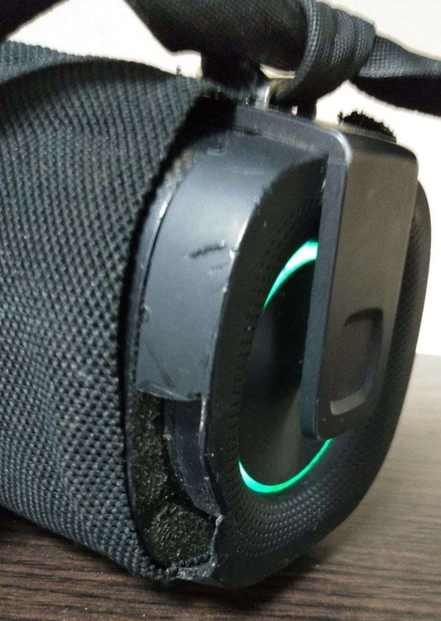 Сліди активного тривалого користування,пошкодження з одного боку,відсутній шматок пластику,тканина,якою обернутий корпус,не тримається,не закріплена,бруд,іржа