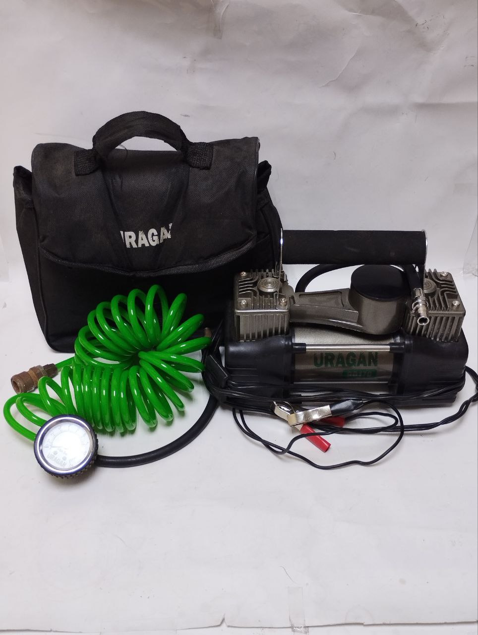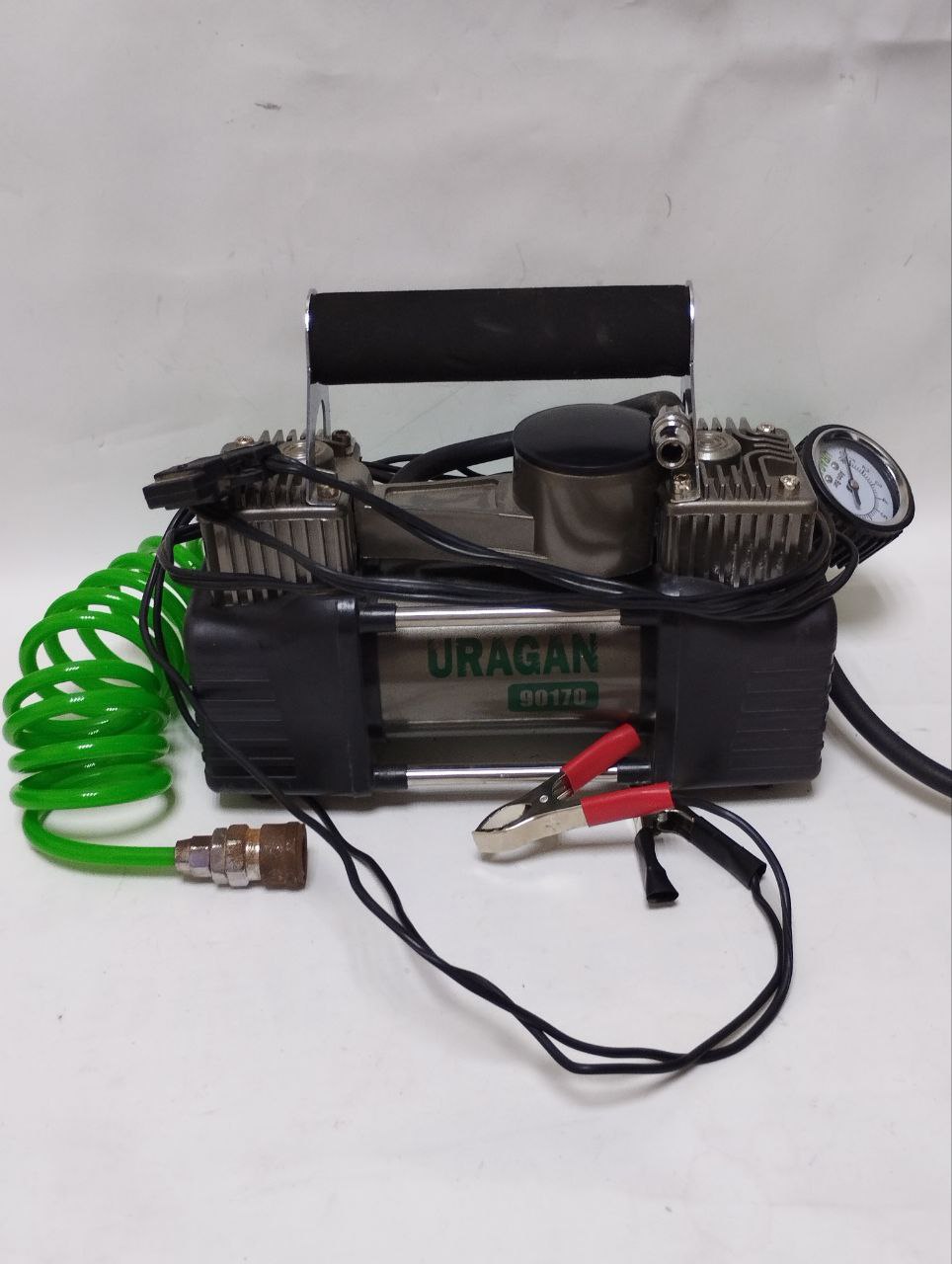 Автокомпресор двопоршневий на клеми АКБ Uragan 90170