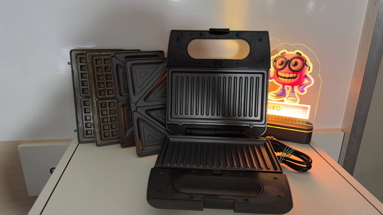 Три вида зміних пластин (Для сендвічів, Для товстих вафель, Для гриля)