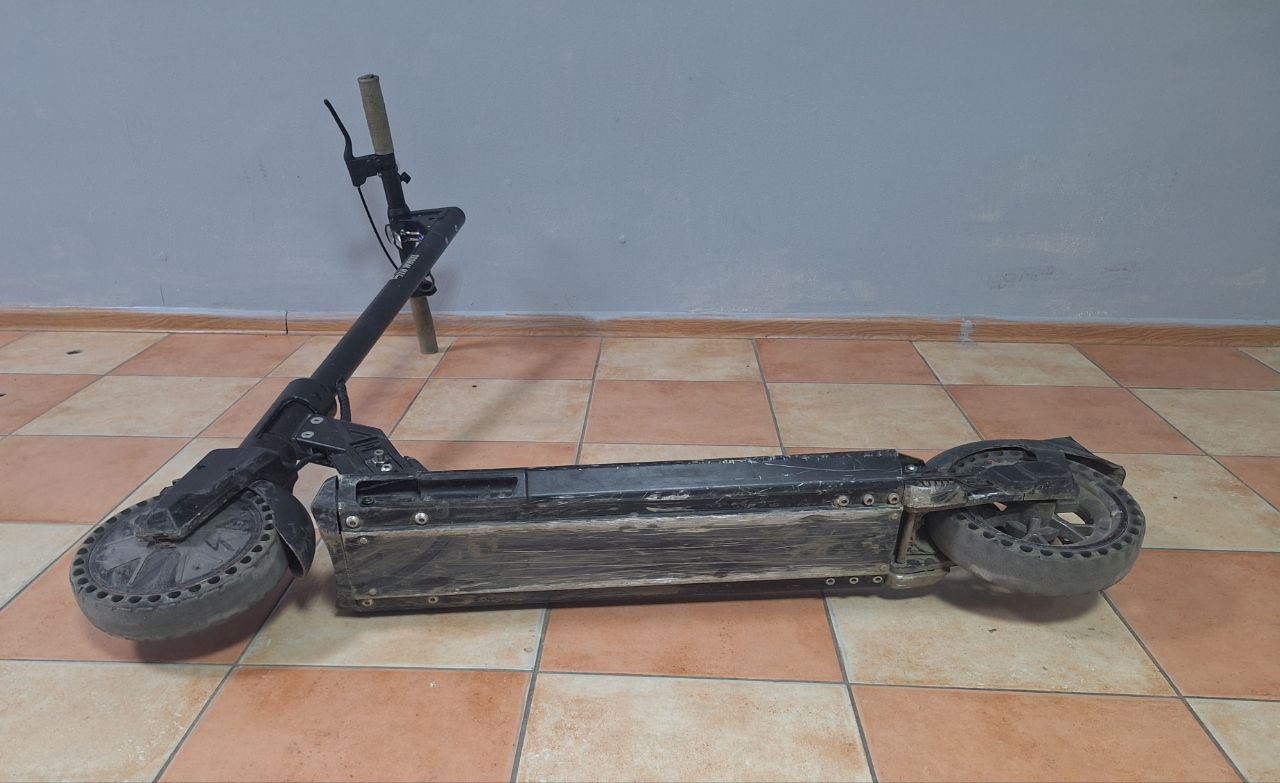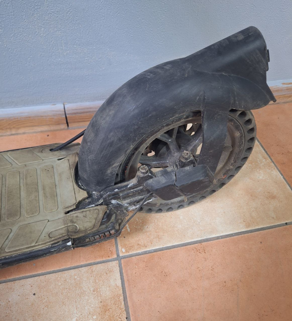 До програми некоректно підключається. Задній ліхтар і ніжка відсутні, Хитається кермо. Взаді, де пружини біля колеса до рами великий шат. Сильні подряпини