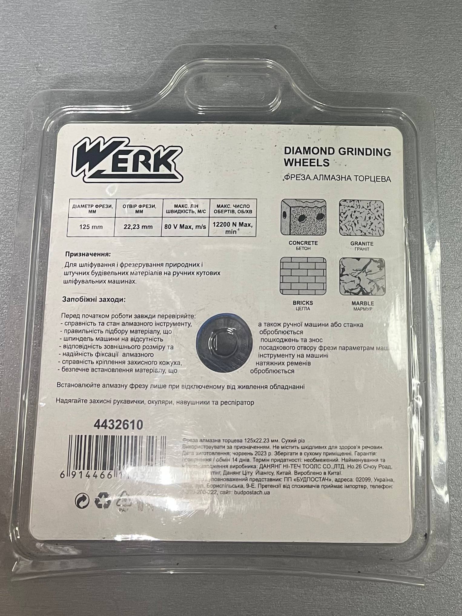 Фреза алмазна торцева Werk 125*22,23