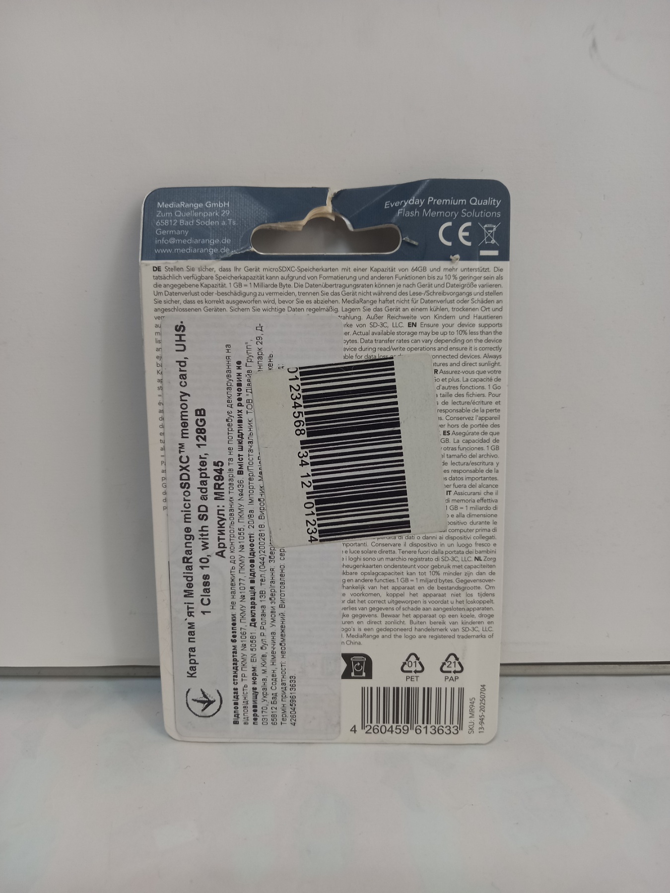 Карта пам'яті MediaRange MicroSDHC 128GB @