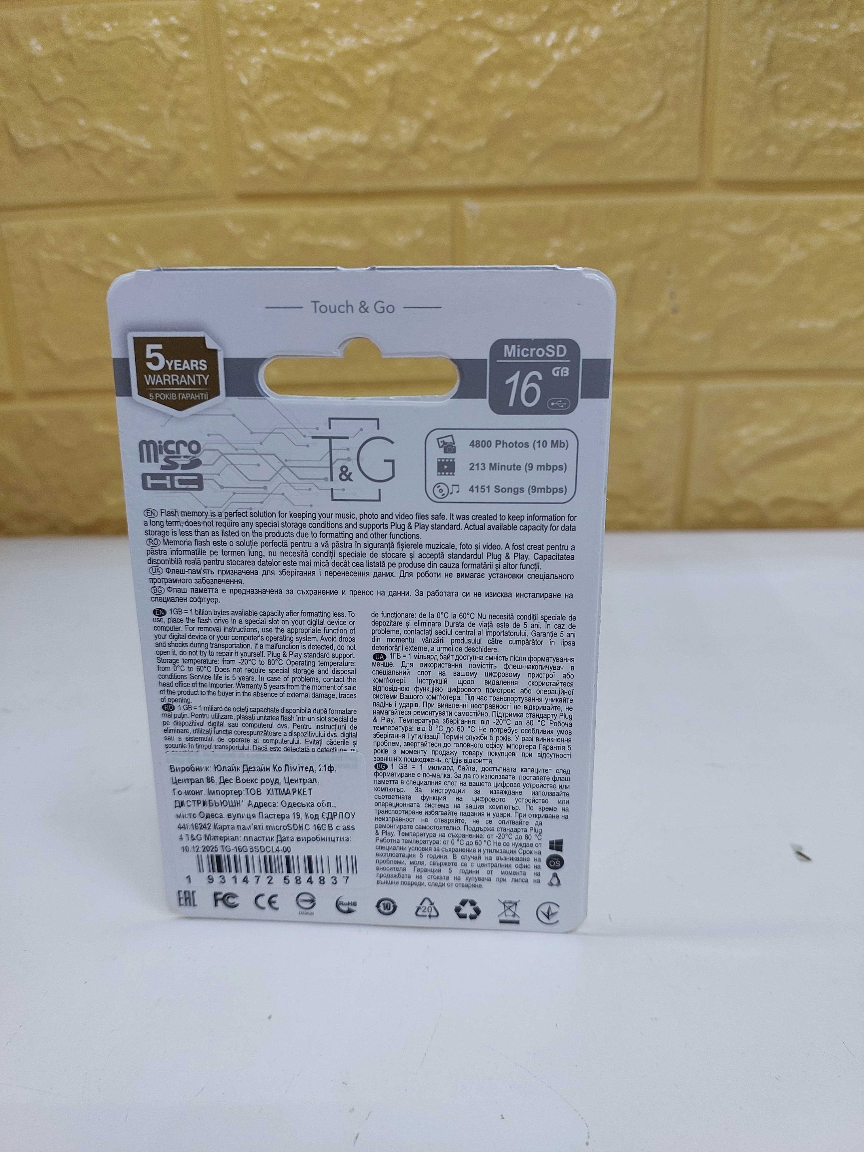 Карта пам'яті microSD T&G 16GB Class 4