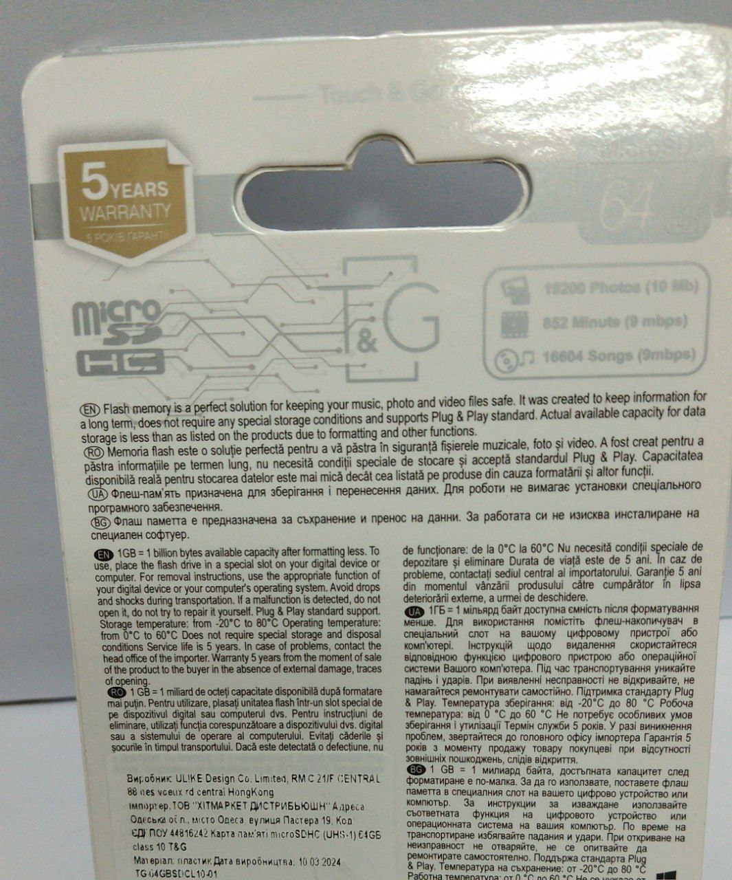 Карта пам'яті T&G MICROSDXC 64GB UHS-I CLASS 10