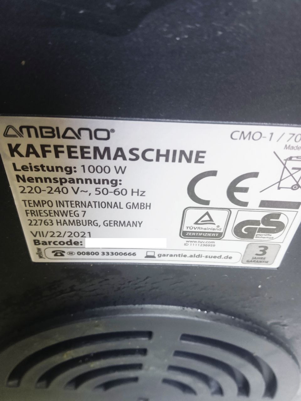 Кавоварка крапельна Ambiano CMO-1 1000W