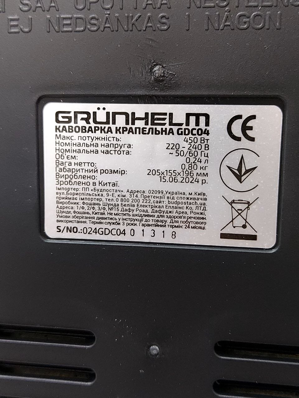 Крапельна кавоварка Grunhelm GDC04