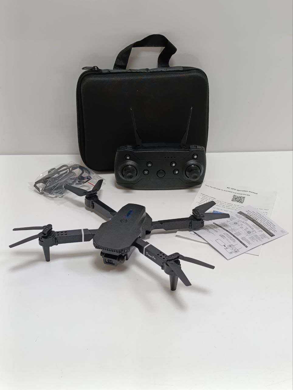 Квадрокоптер, пульт дистанційного керування, запасні лопаті, сумка-чохол, інструкція користувача