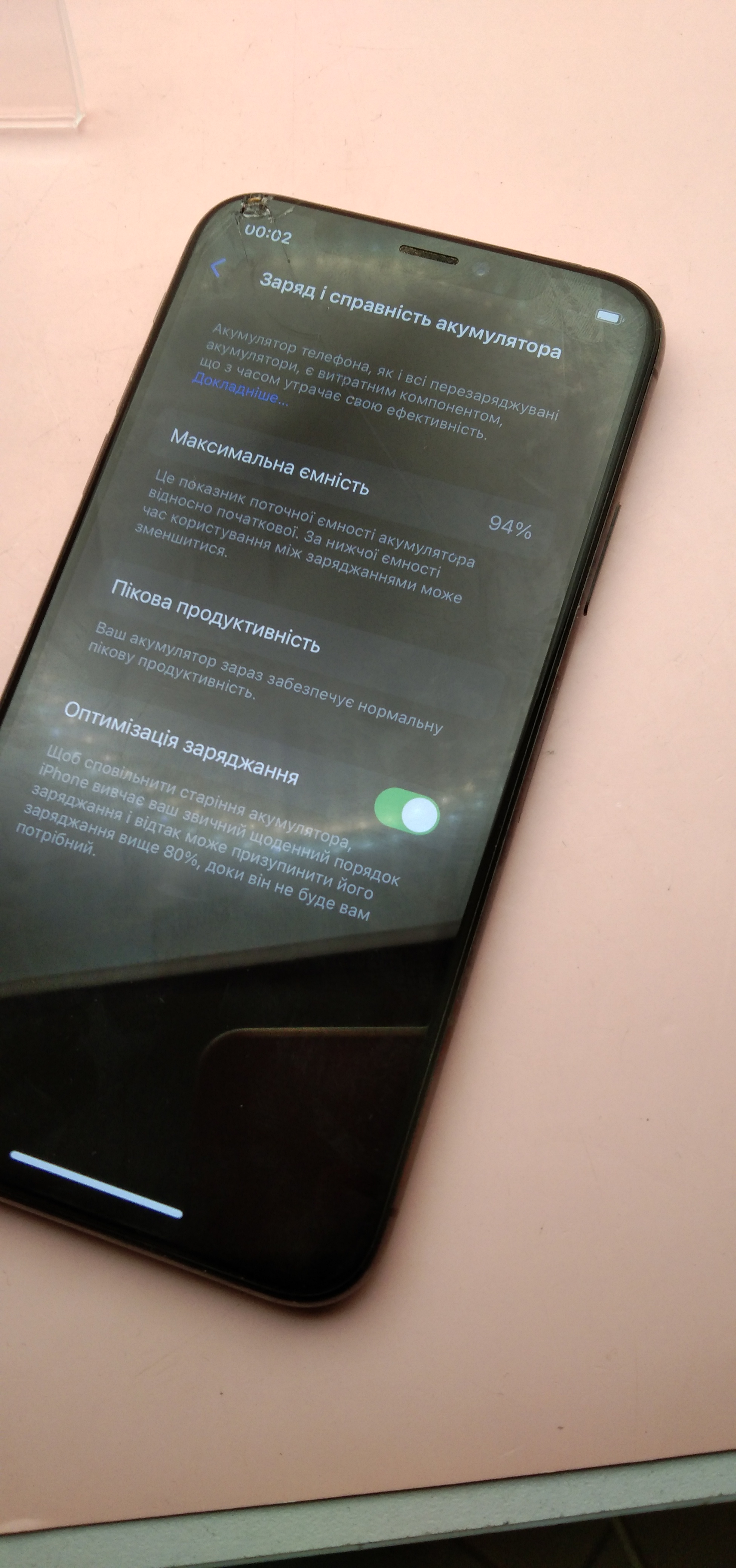 Тріщина на екрані.АКБ 94%