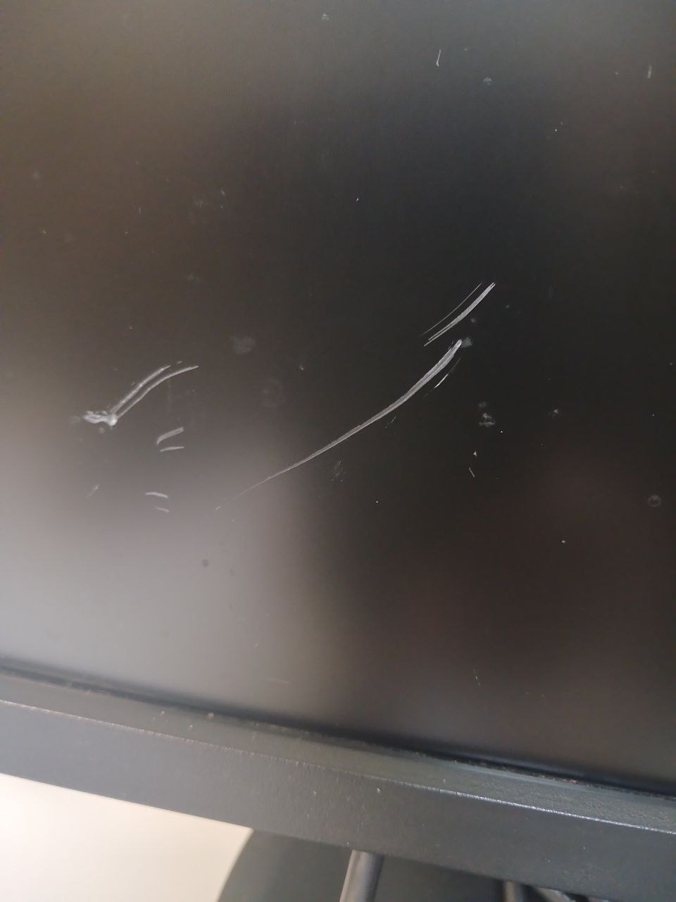 подряпини на екрані, кілька світло сірих плям, брудний, на працездатність не впливають