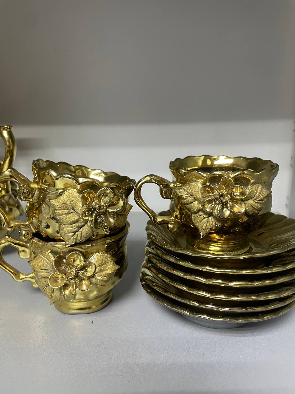 сліди використання,деякі квіточки надщерблені,5 чашок, 6 тарілок.