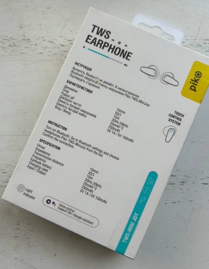 Навушники вставні бездротові з гарнітурою Piko TWS-MiniJoy білі
