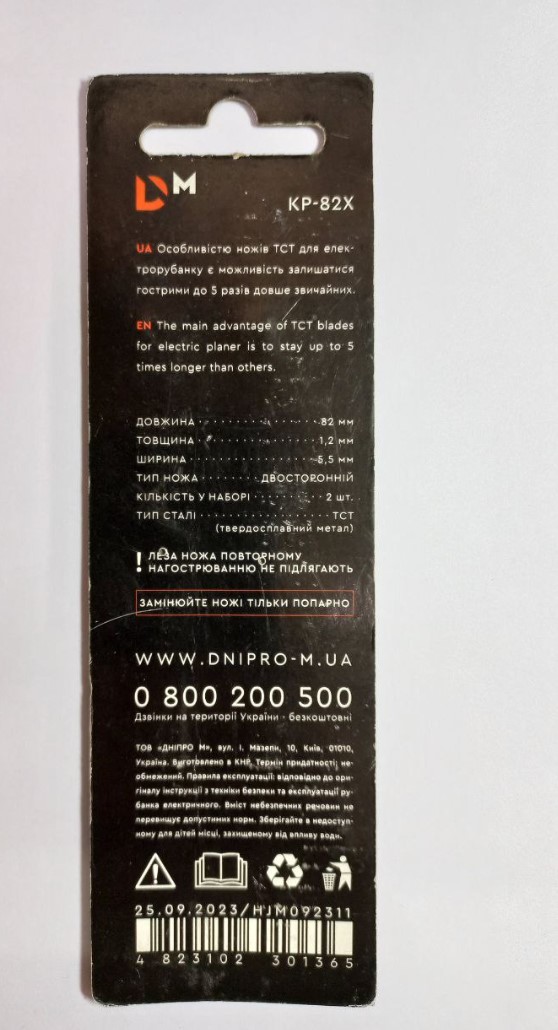 Ніж для рубанкa Dnipro-M KP-82X