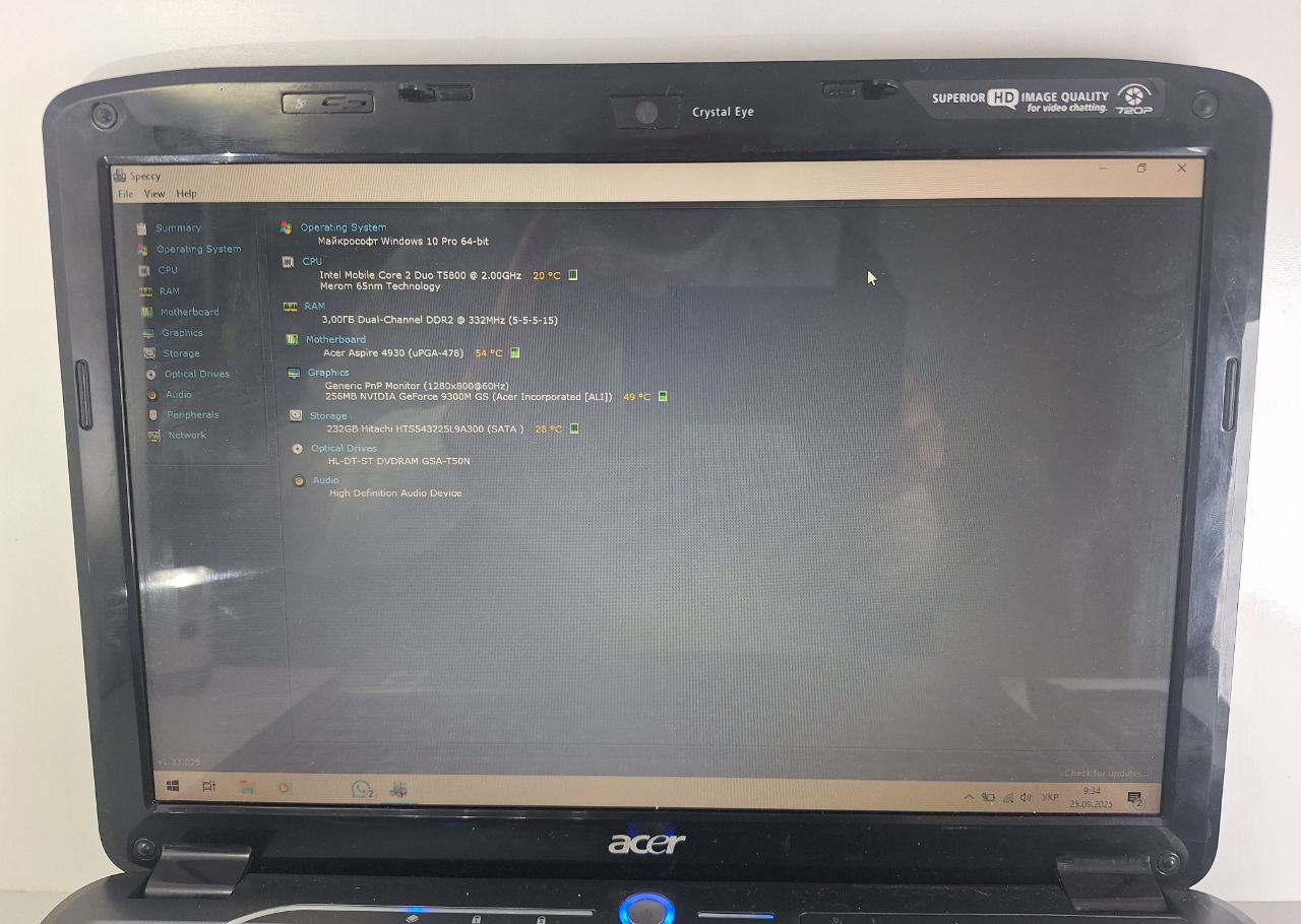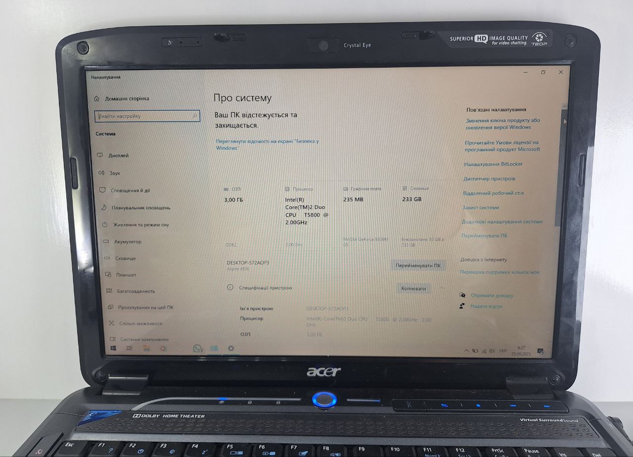Ноутбук ACER Aspire 4930 Core2Duo T5800/Ram3GB/HDD240GB
