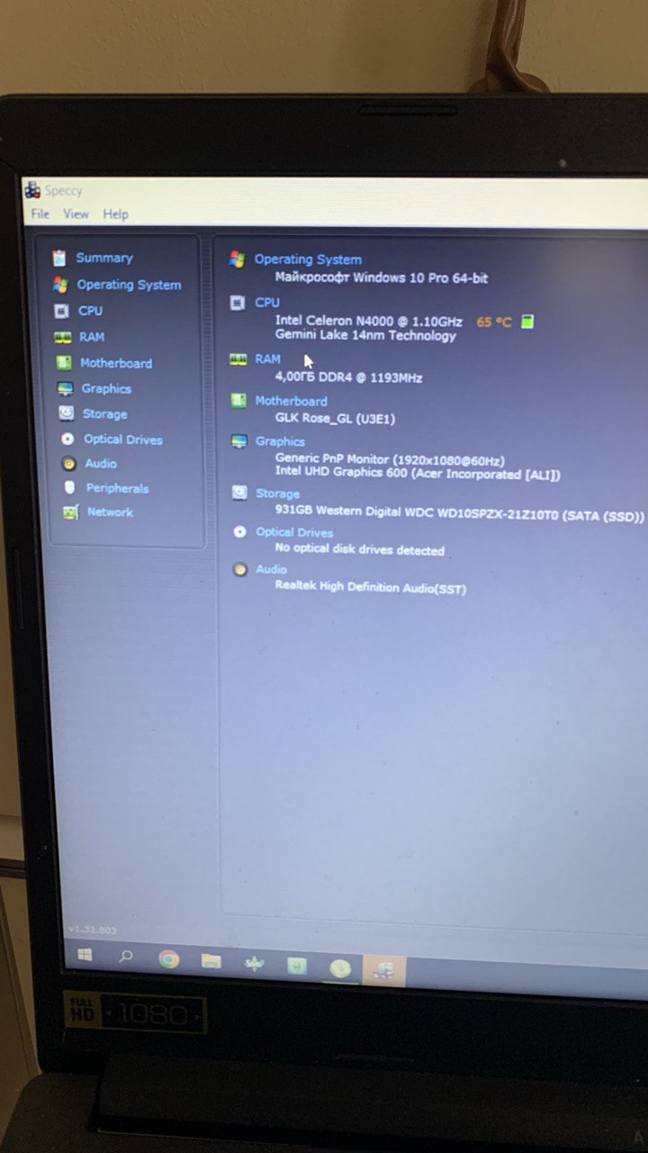 Ноутбук ACER N19N1 Celeron N4000/RAM4GB/HDD1TB