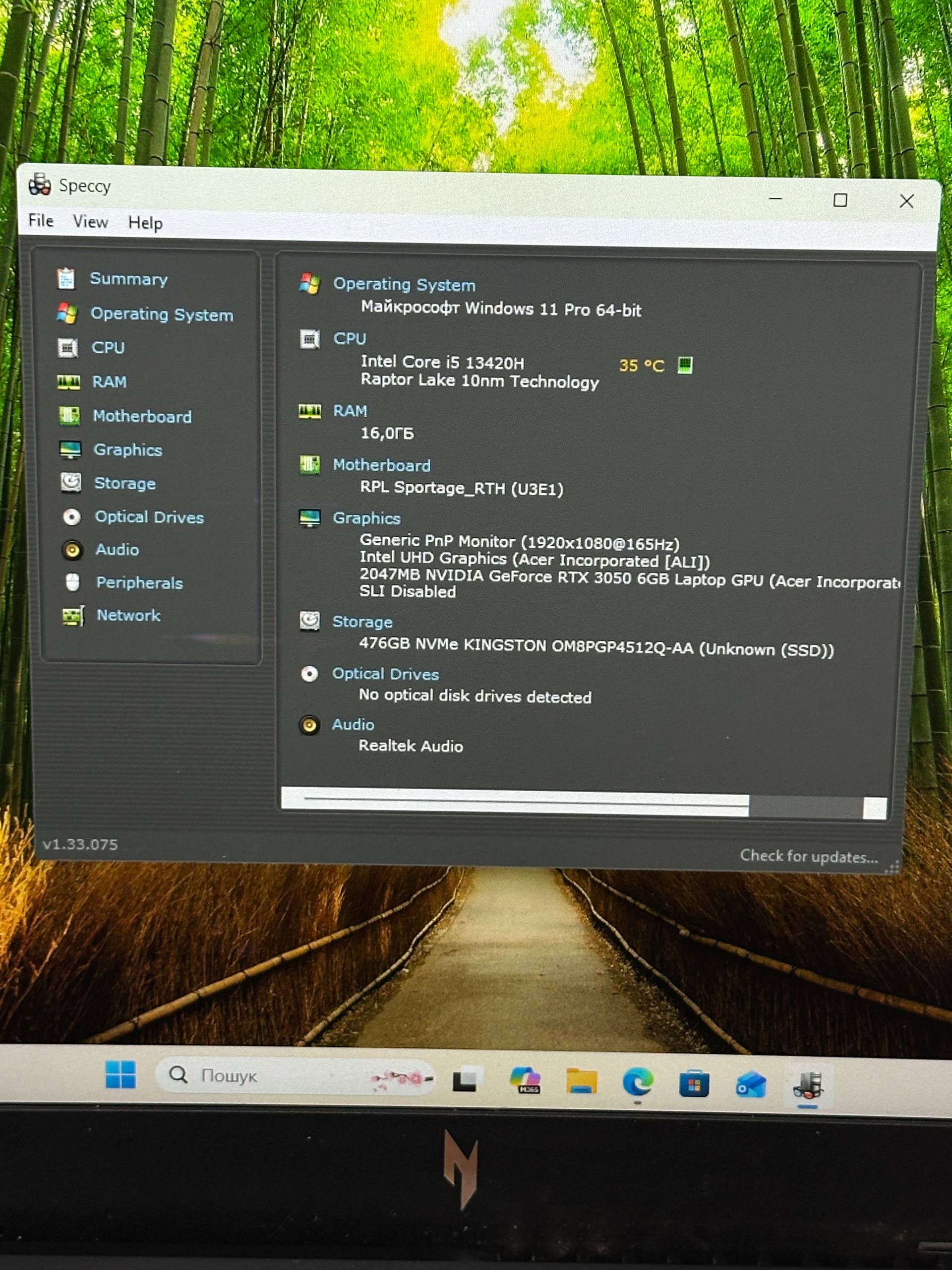 Ноутбук ACER Nitro V15 i5-13420/RAM 16/GeForce RTX3050/SSD500
