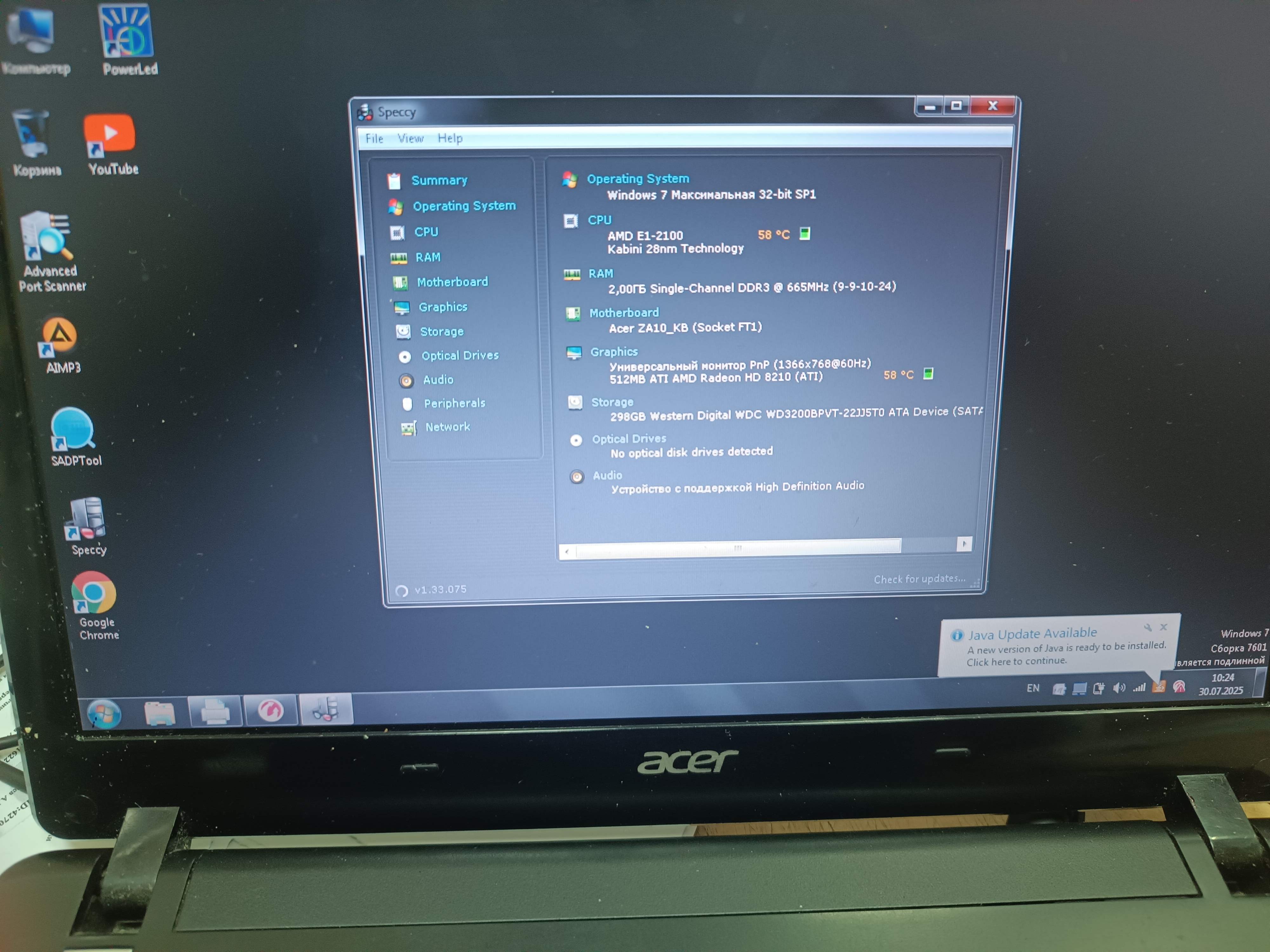 Ноутбук ACER 5250/AMD E-450/RAM4/HDD240GB/Radeon HD 6320 2G