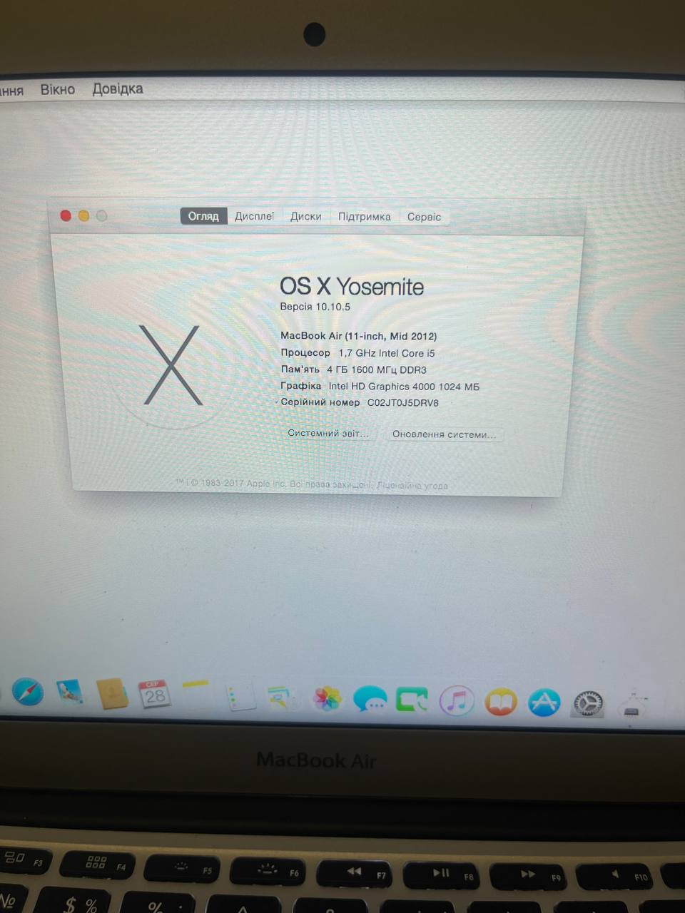 Ноутбук Apple MacBook Air (11-inch, Mid 2012) A1465 Core i5/RAM4GB/SSD64GB