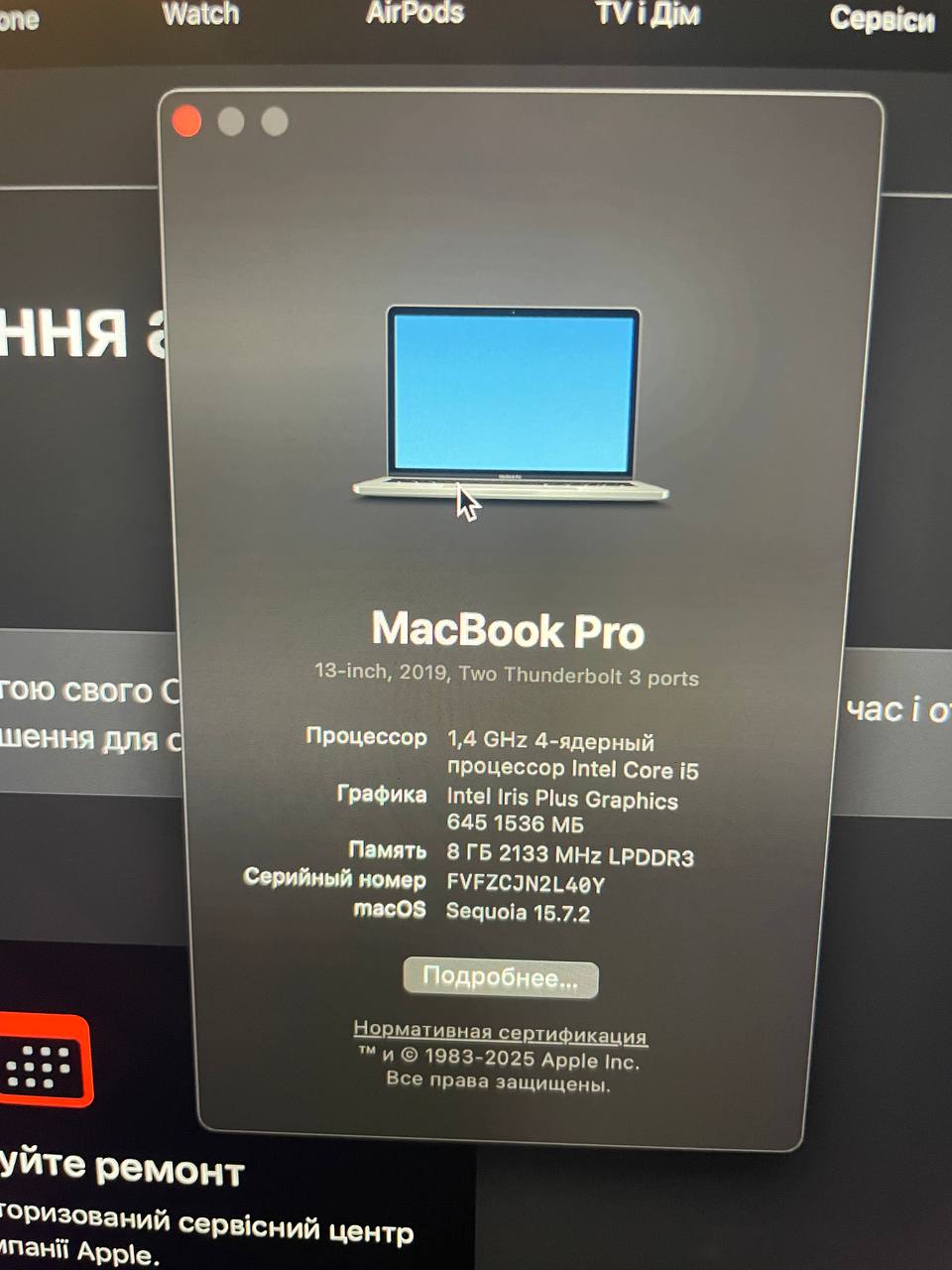 Ноутбук APPLE macbook pro A2159 2019 13" 8/28