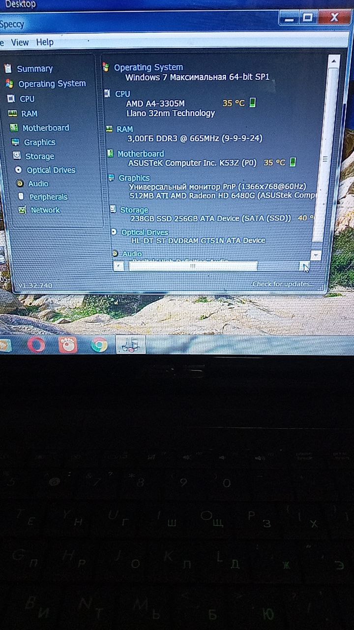 Ноутбук Asus AMD A4-3305M/Ram3gb/SDD256gb/AMD Radion 512mb