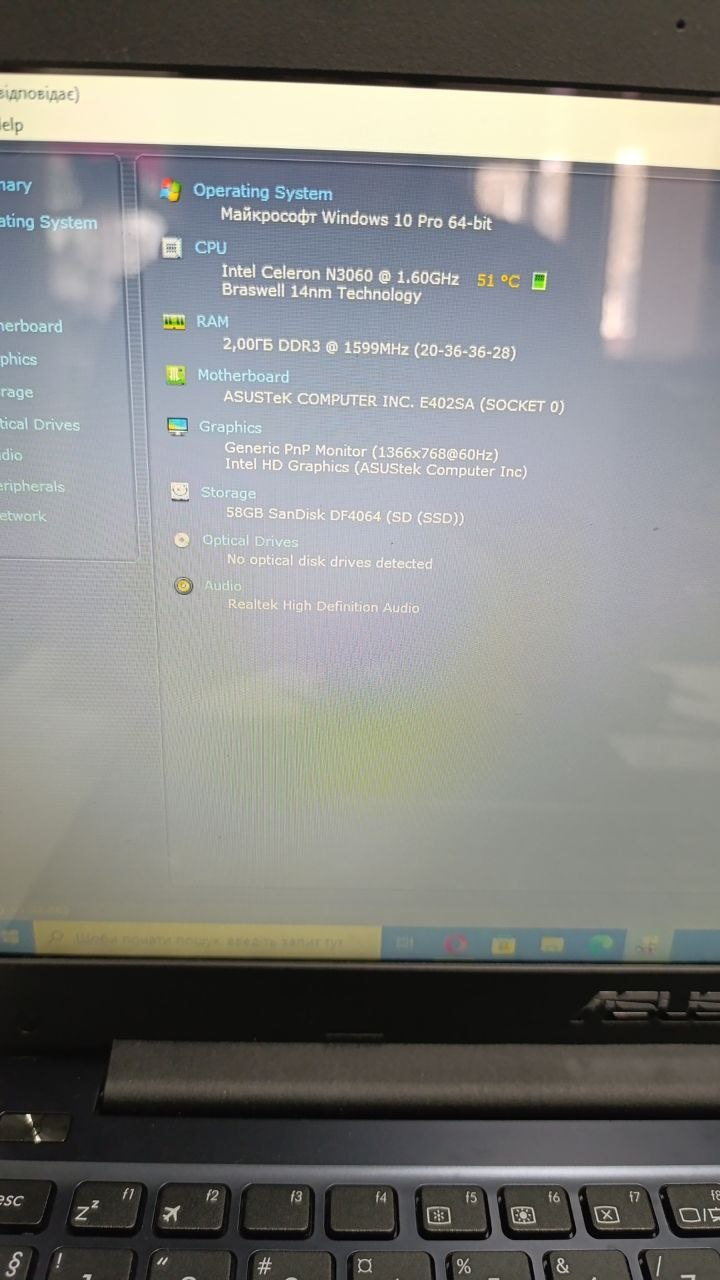 Ноутбук Asus E402S (Celeron N3060/Ram 2Gb/SSD-64Gb )