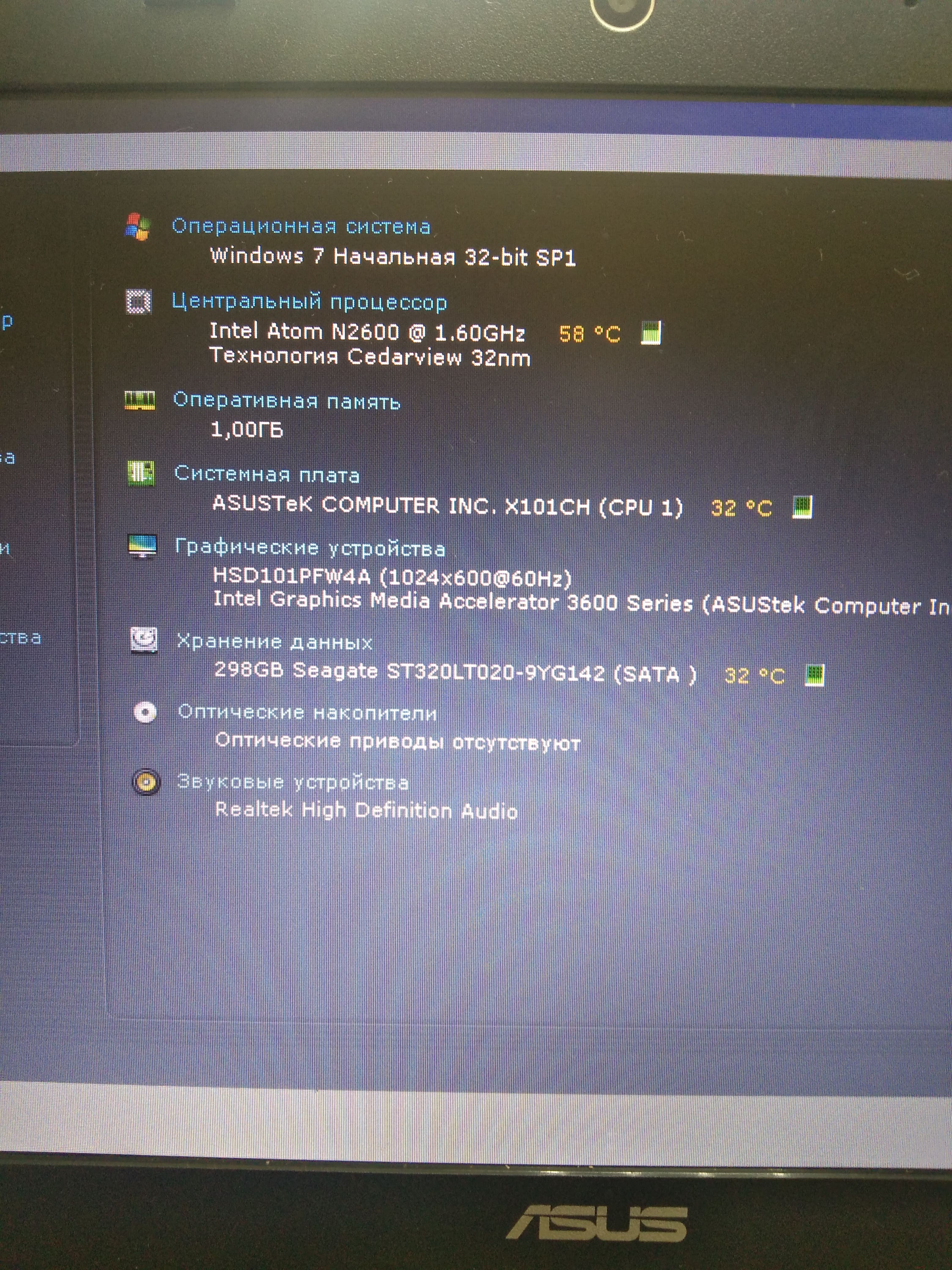Ноутбук Asus Eee PC X101CH Atom N2600/RAM1GB/HDD320GB