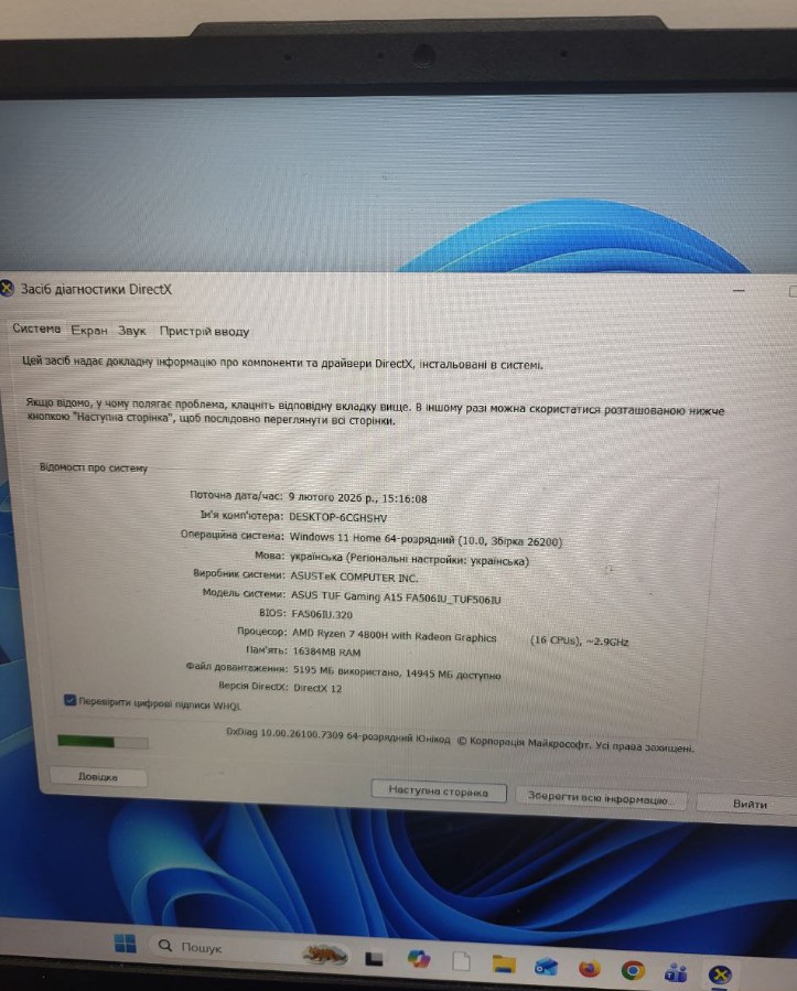 Ноутбук Asus FA506 AMD Ryzen 7 4800H/RAM16GB/SSD256GB/GeForce GTX 1660 Ti
