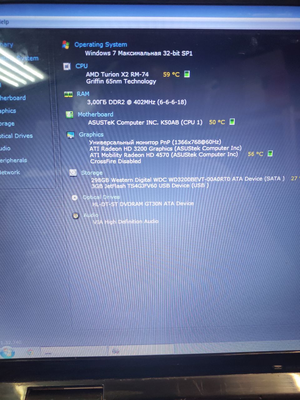 Ноутбук Asus K50AB/AMD Turion X2 /RAM 3Gb/HDD320