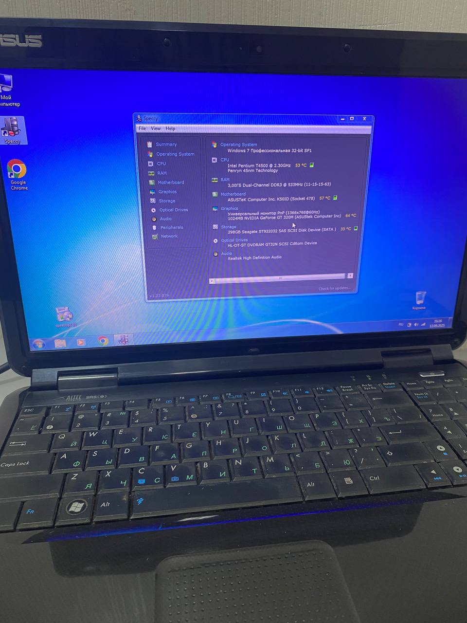 Ноутбук Asus К50I PentiumT4500/RAM3GB/HDD320GB/Geforce GT320M