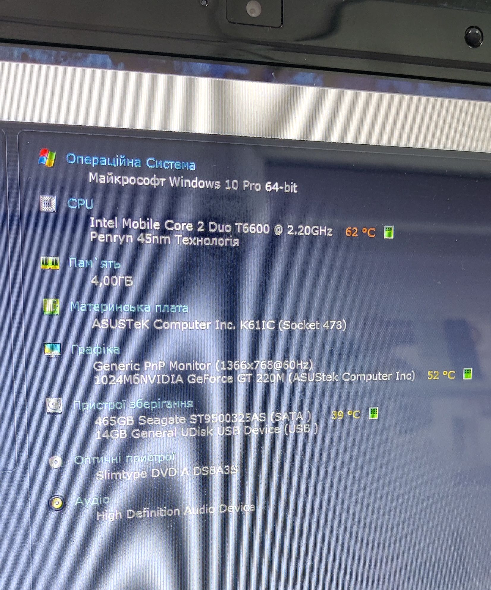 Intel Core2 Duo T6600@2.2Ghz/RAM 4GB/HDD 500GB/NVIDIA GF GT 220M