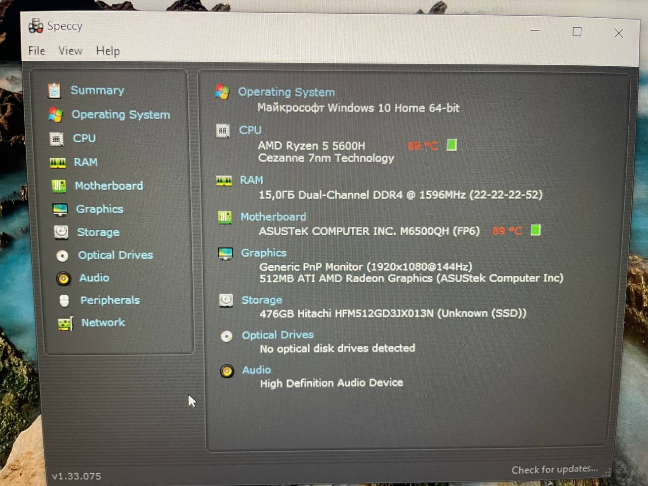 Ноутбук Asus M6500Q Ryzen 5 5600H/RAM16GB/SSD512GB
