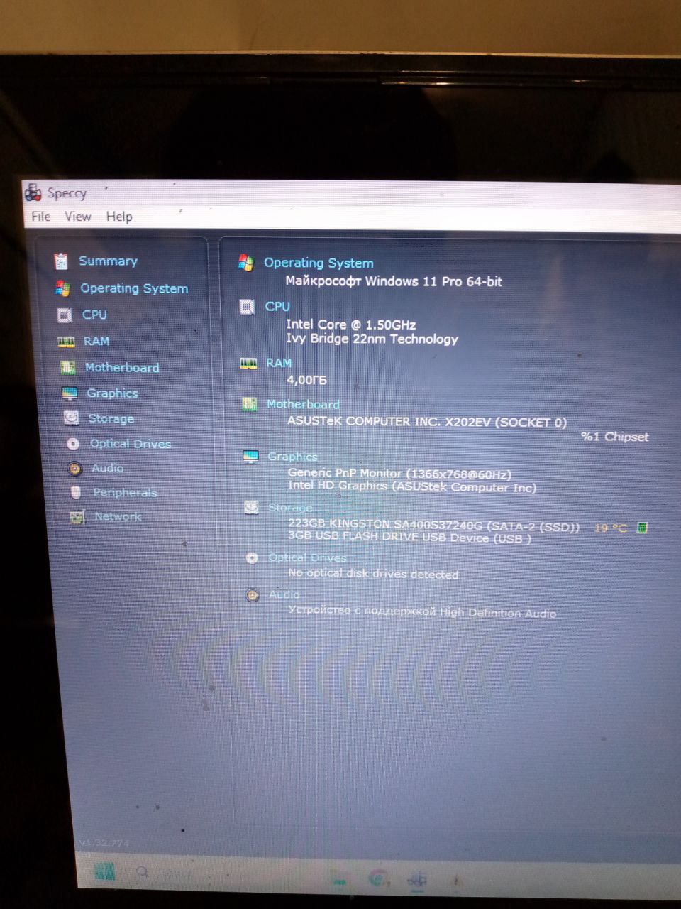 Ноутбук Asus S200E Intel Celeron CPU 1007U/RA4GB/SSD240GB