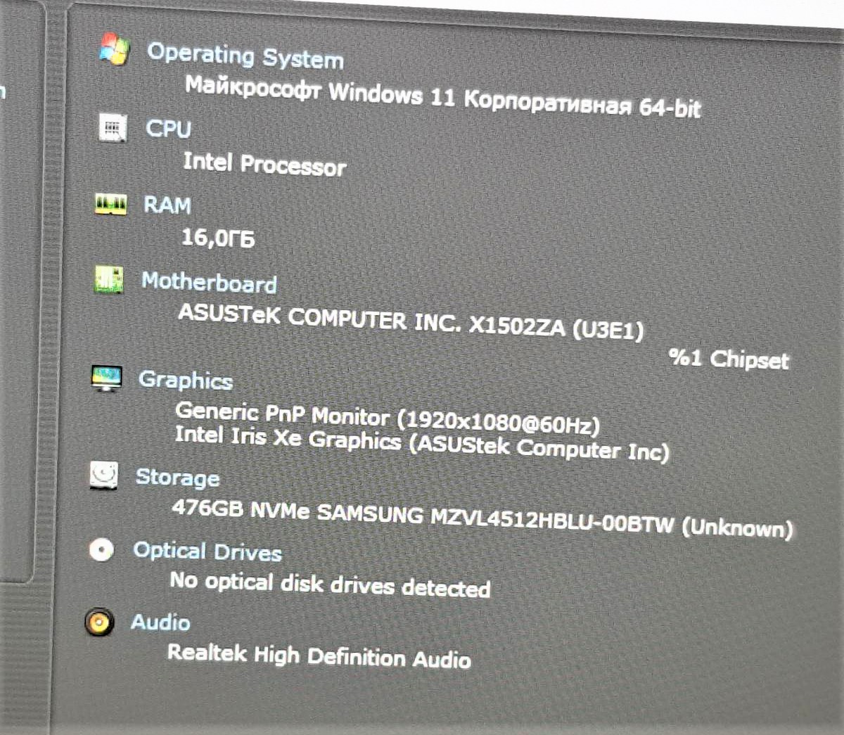 Ноутбук Asus Vivobook X1502ZA-BQ1570 Core i7-1255U/RAM16GB/SSD512GB/Intel Iris Xe Graphics