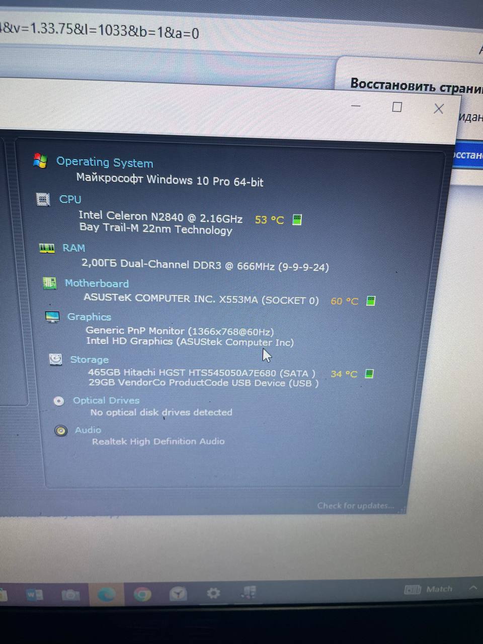 Asus X540S/2GbRAM/120GbSSD/CeleronN3050/GenericPnPMonitor