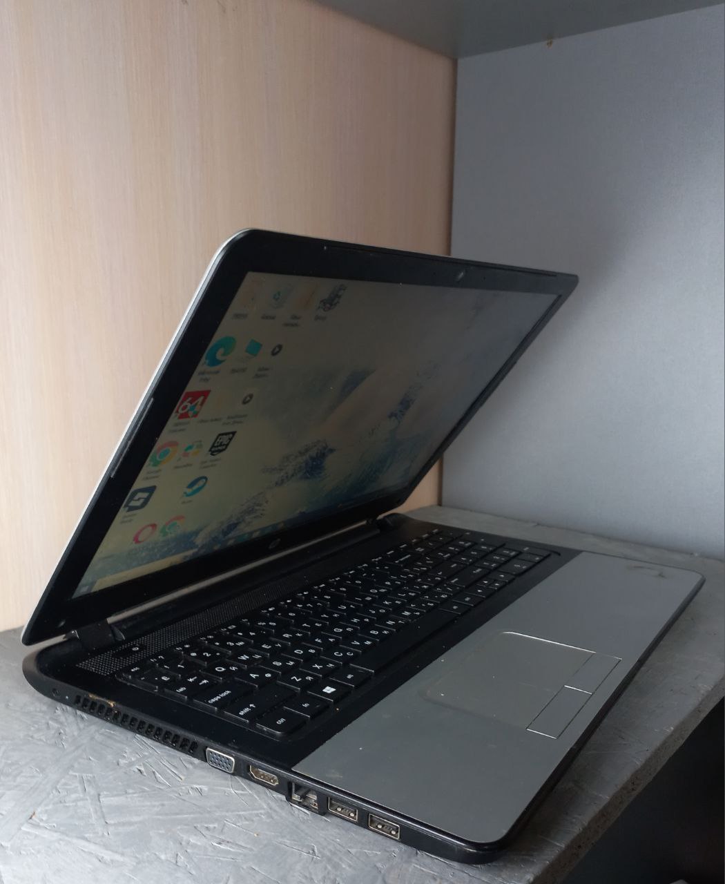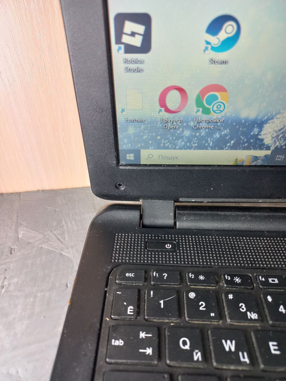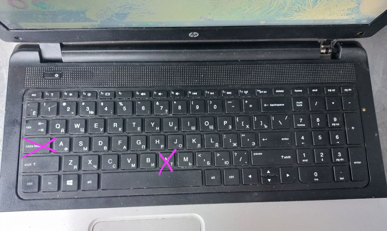замінена петля, не рідна. перекошений екран, тріщини на акб і кришці, немає болтів, не працює Caps та N, відсутня одна гумова ніжка, відпадає пластик на дисководі
