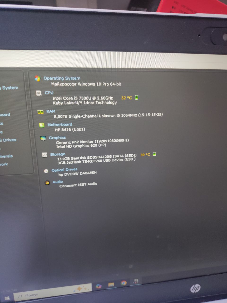 Ноутбук HP ProBook i5 7300U\RAM8Gb\SDD120Gb
