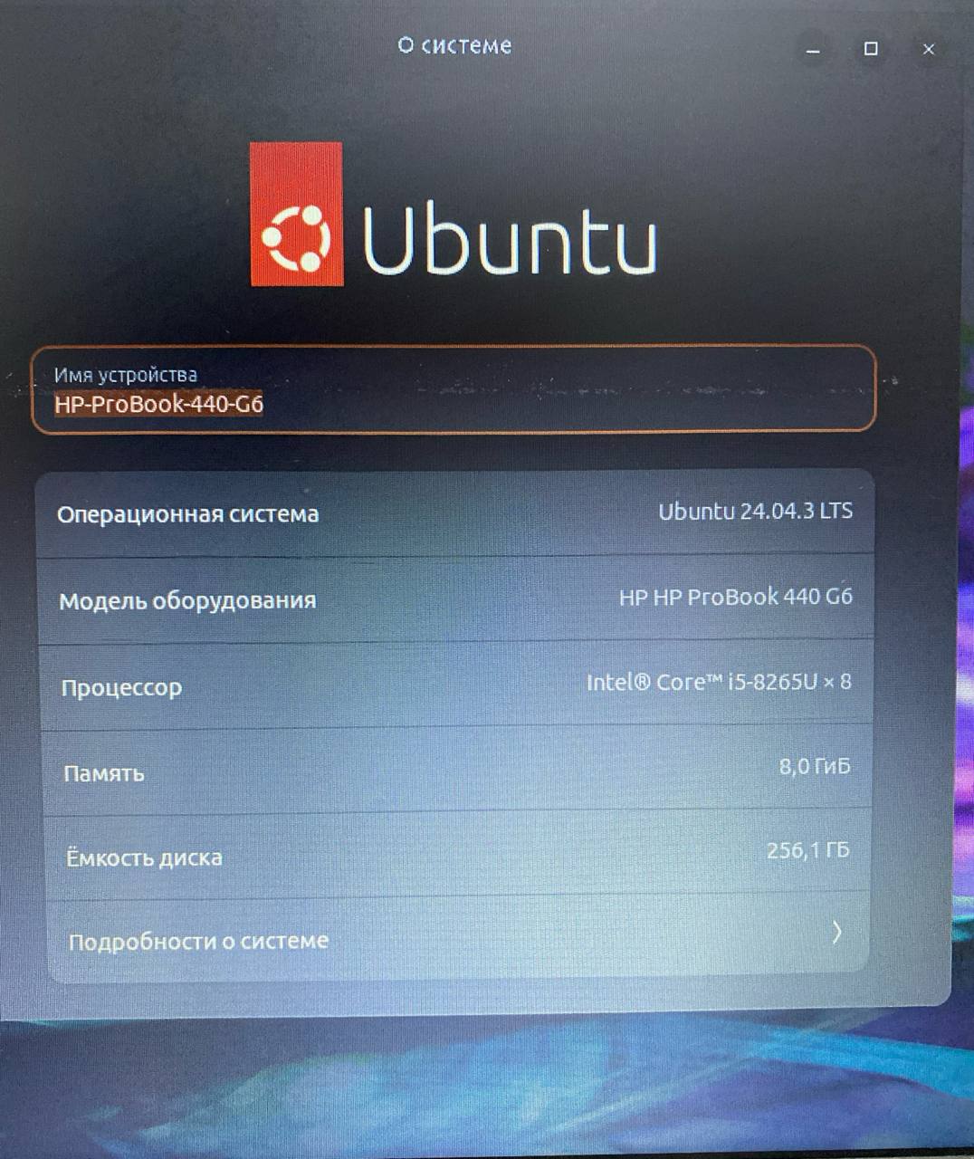 Ноутбук HP ProBook 440 G6 Ubuntu 24.04.3 LTS /Intel Core i5-8265U/RAM8GB/SSD256GB