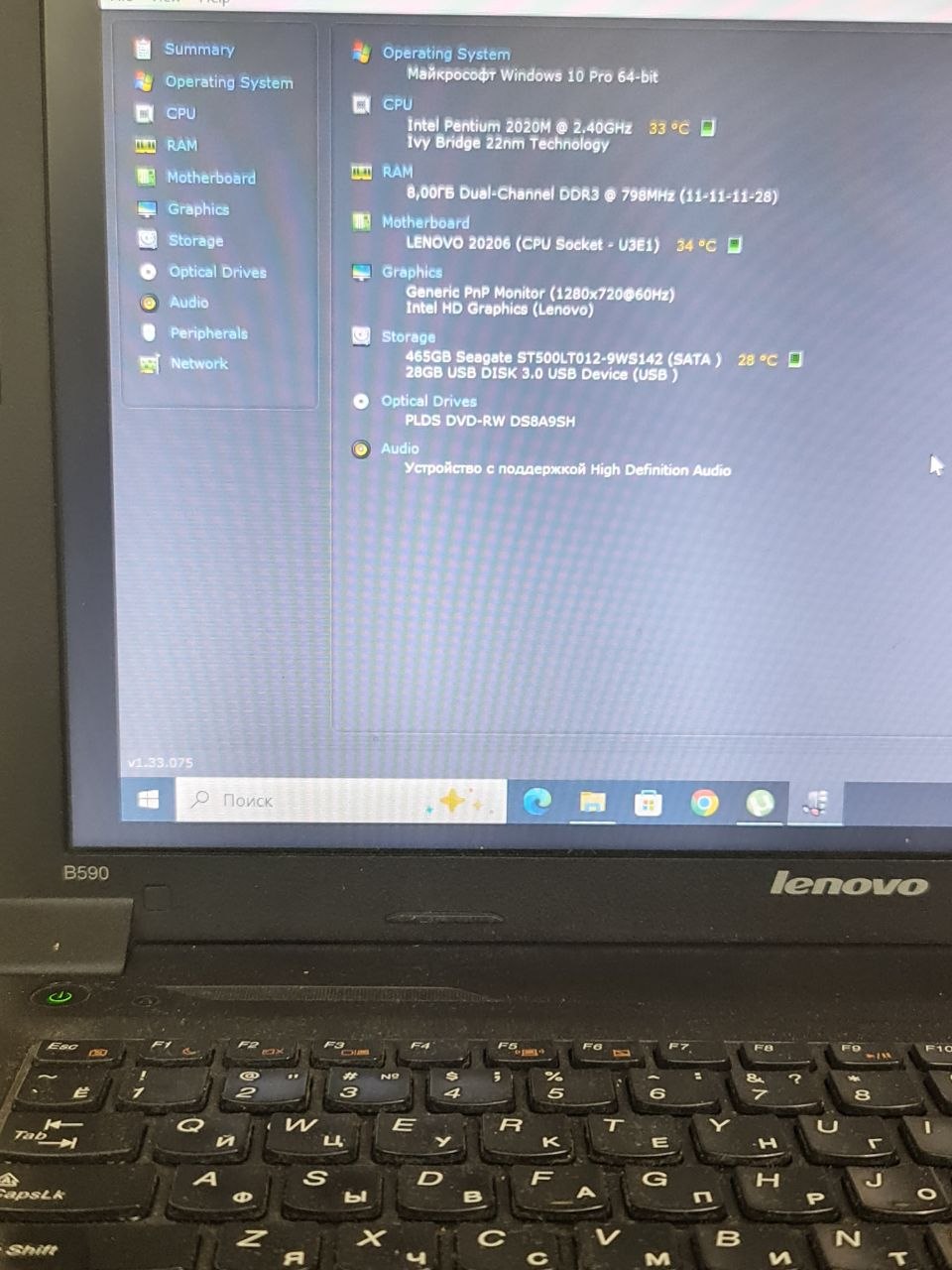 Ноутбук Lenovo B590 Pentium 2020M/RAM8GB/HDD500GB