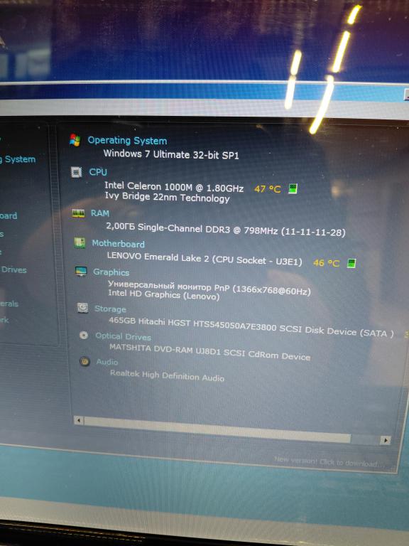 Ноутбук Lenovo G580 Celeron1000M/RAM2GB/HDD500GB