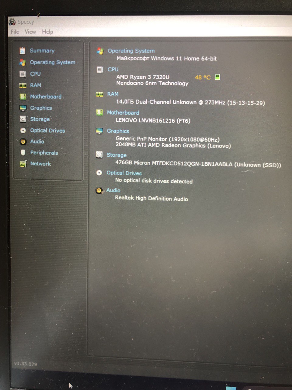 Ноутбук Lenovo IdeaPad 1 15IAU7 Ryzen 3 7320U/ RAM14GB/SSD512 GB/2048MB AMD Radeon Graphics
