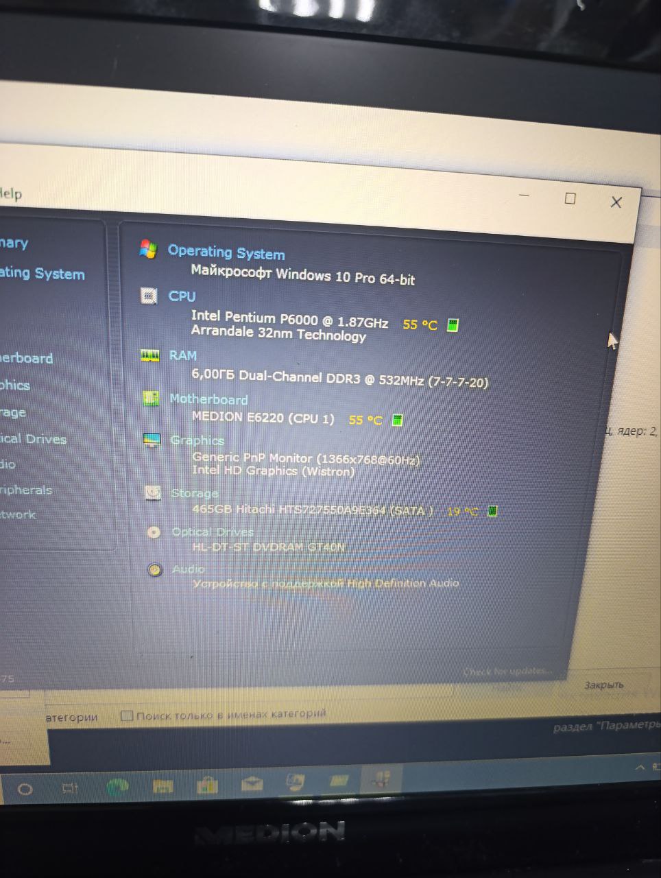 Ноутбук Medion Akoya E6220 Pentium P6000/6 RAM gb/HDD 500gb