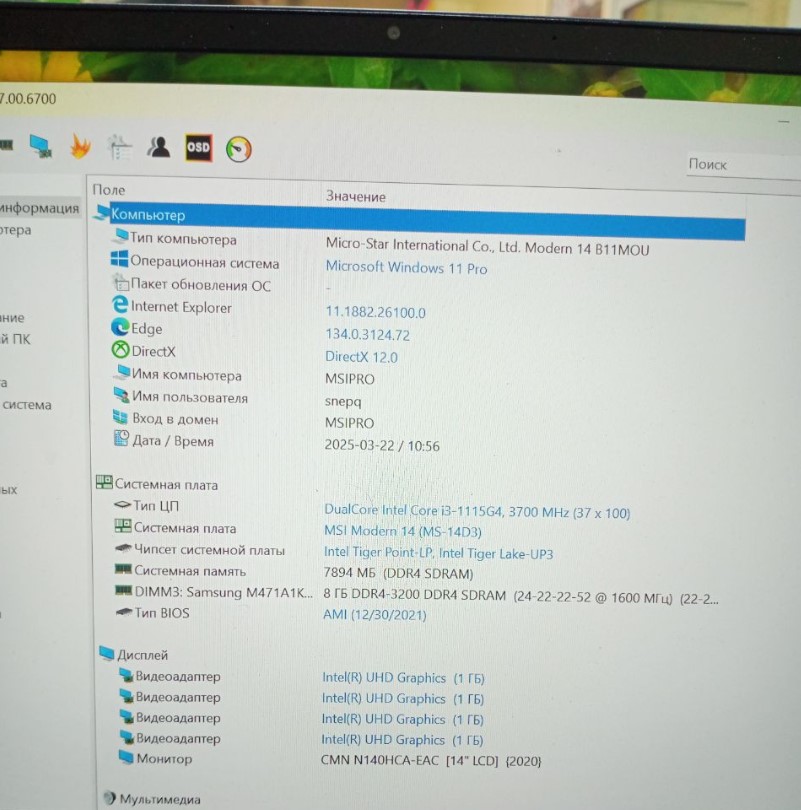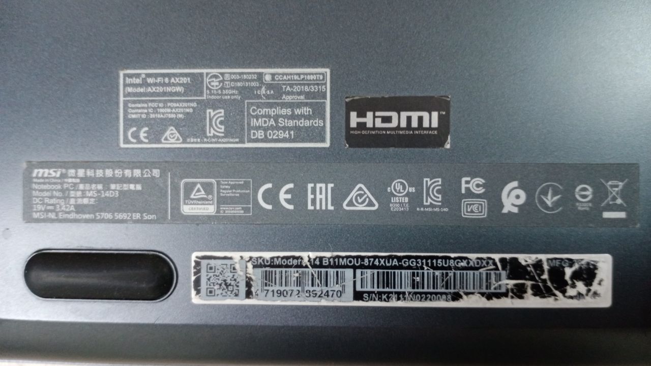 Ноутбук MSI MS-14D3 Core i3-1115G4/RAM8GB/SSD256GB/UHD Graphics