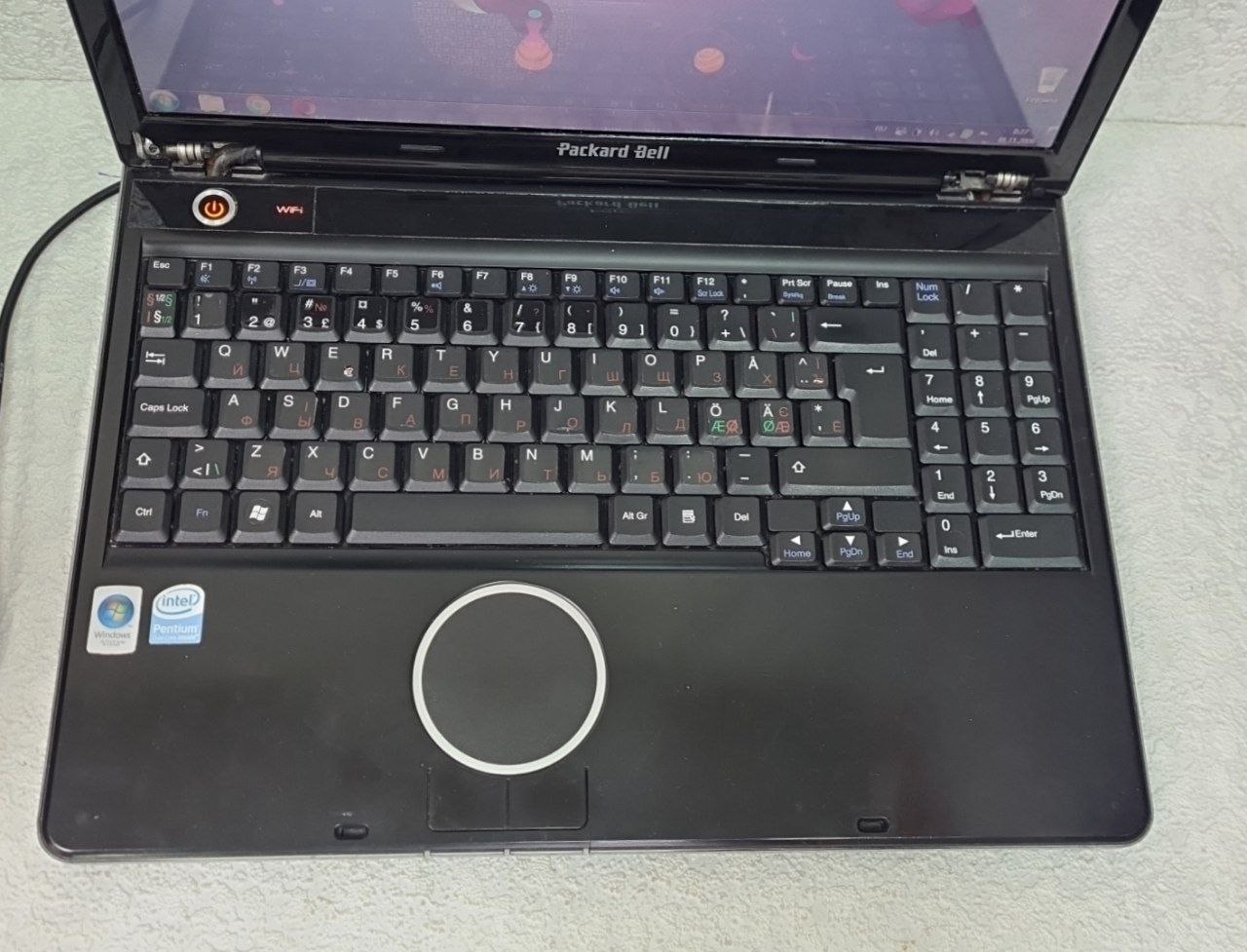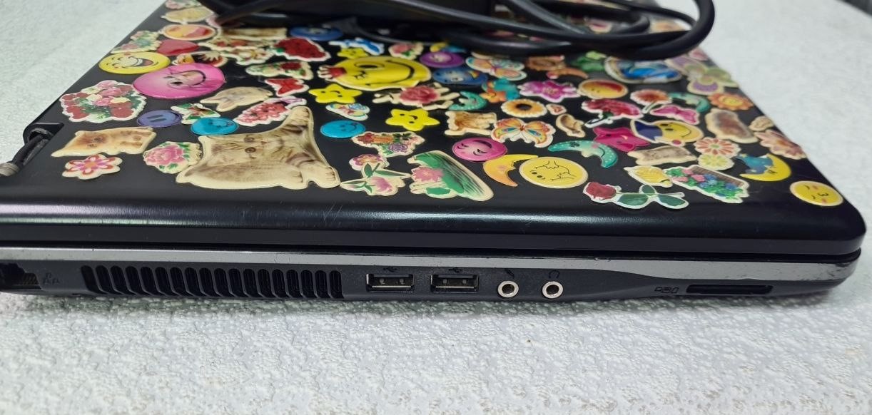 сліди використання, працює від мережі,при завантаженні входить в Биос, клавіатура не русіфікована (є наклейки) звук рипить, корпус пошкоджений у місцях кріплення екрана