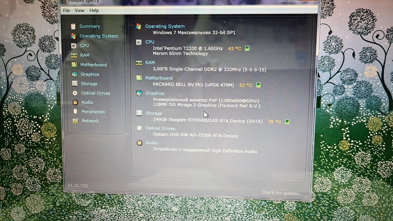 Ноутбук Packard Bell Hera C Pentium T2330/RAM3GB/HDD160GB