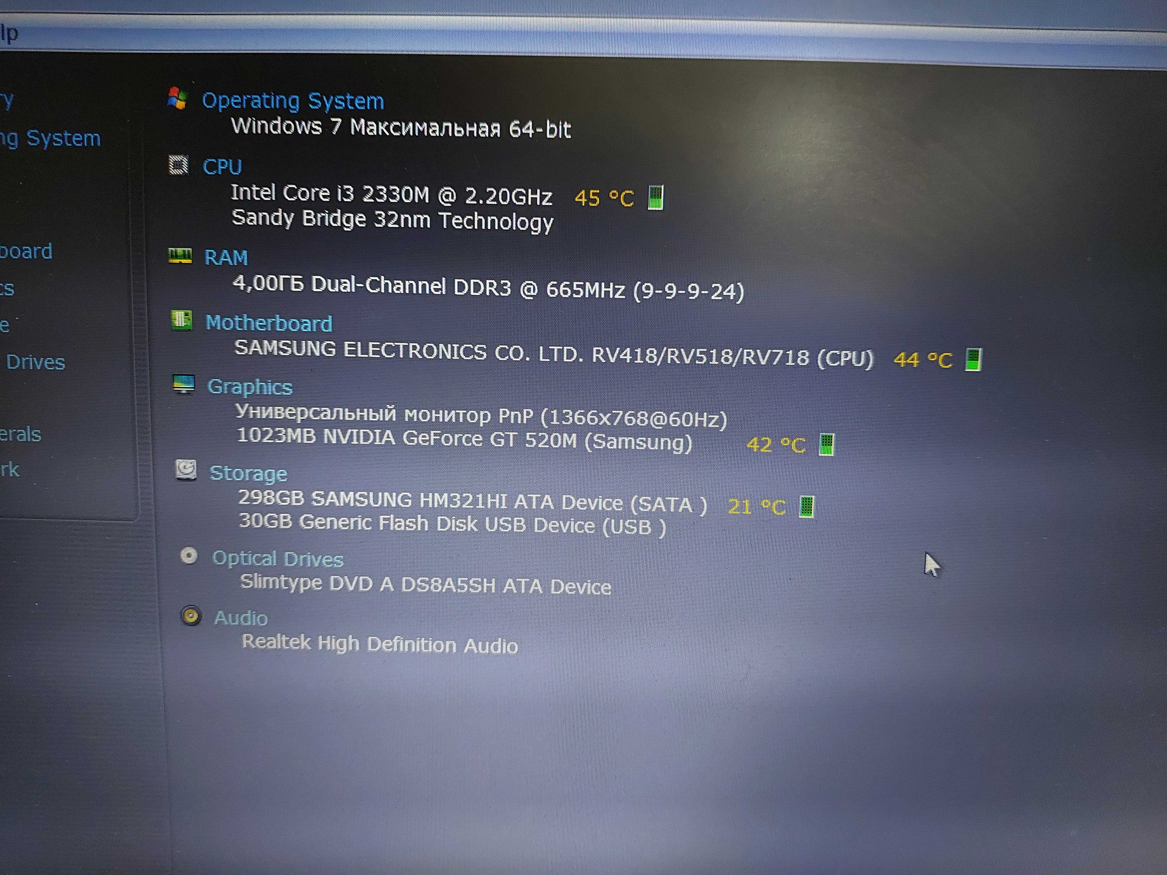 Ноутбук Samsung RV518 Core i3 2330m/RAM4GB/HDD320GB/Nvidia GF GT520M