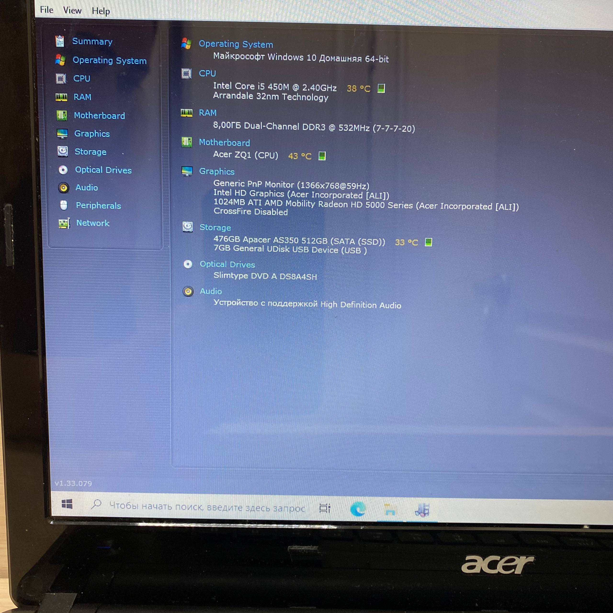 Ноутбуки ACER Aspire 4745 i5-M450/RAM8Gb/HDD500Gb/Radeon HD 5000