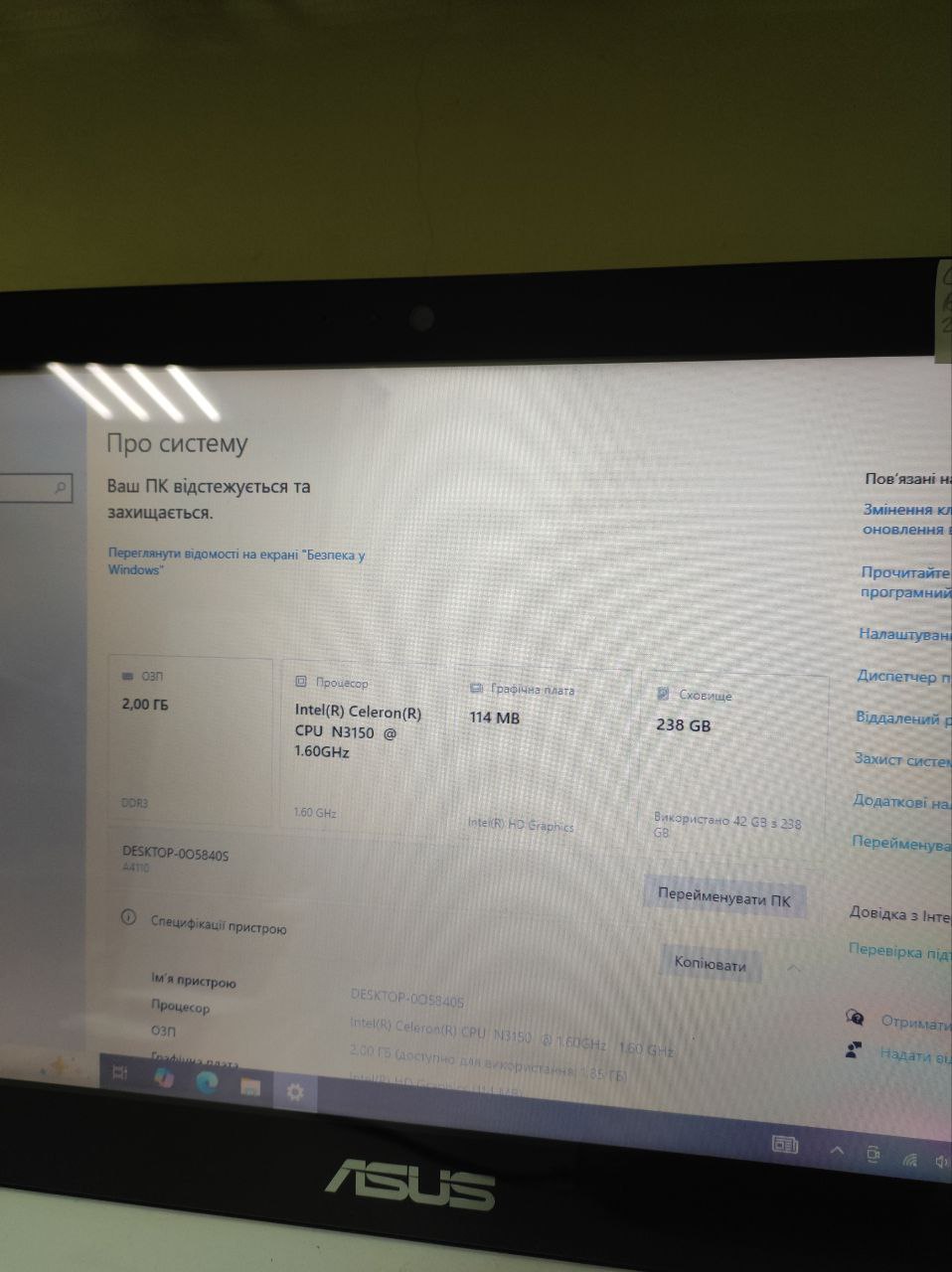Планшет Asus Celeron N3150/Ram 2/SSD 256/Hd Graphics