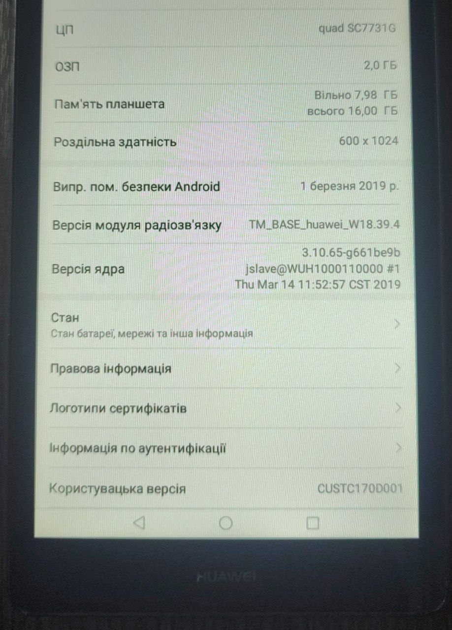 Планшетний компьютер HUAWEI BG2-U01 16гб