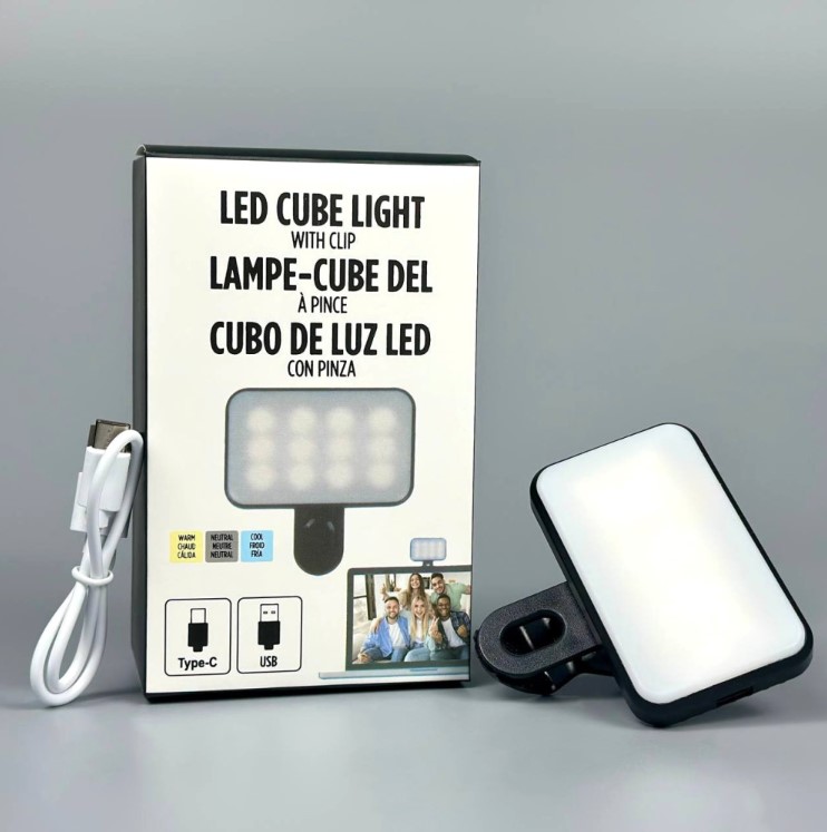 Портативне відеосвітло Led Cube Light із затискачем для селфі триколірний режим 500mAh
