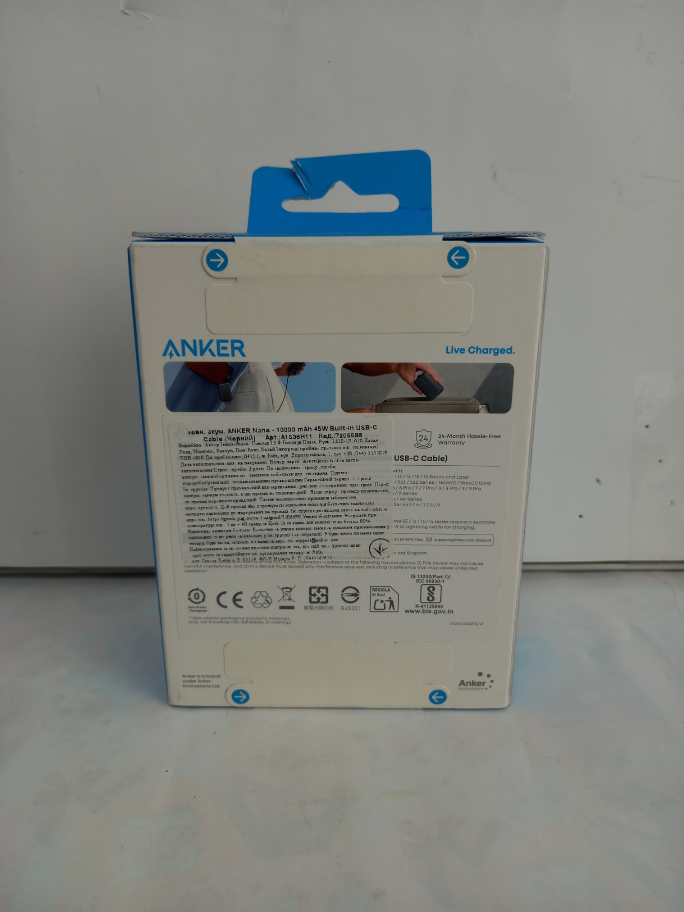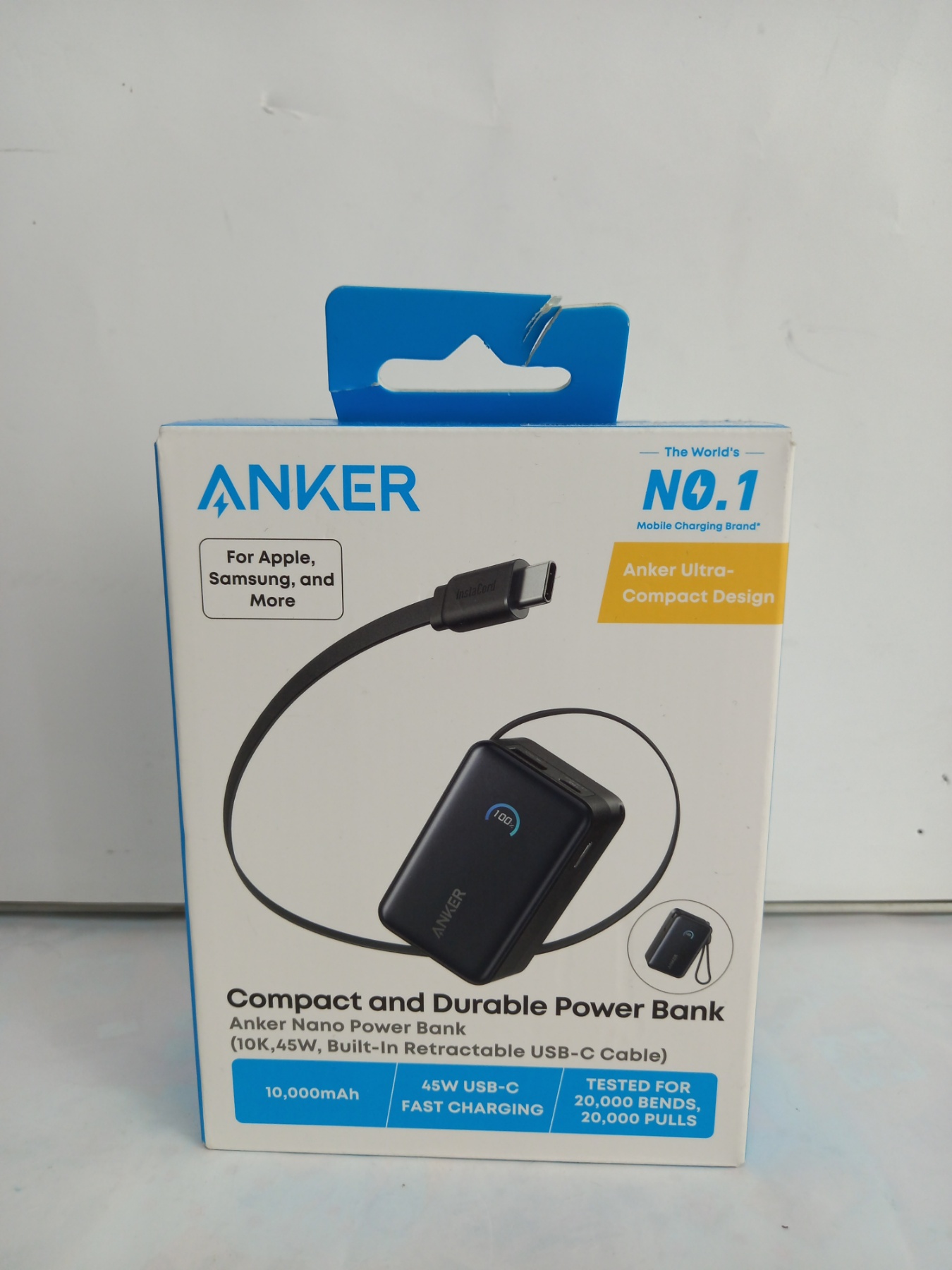 Power Bank Anker Nano (10K, 45W, Built-In Retracta) 10000mAh